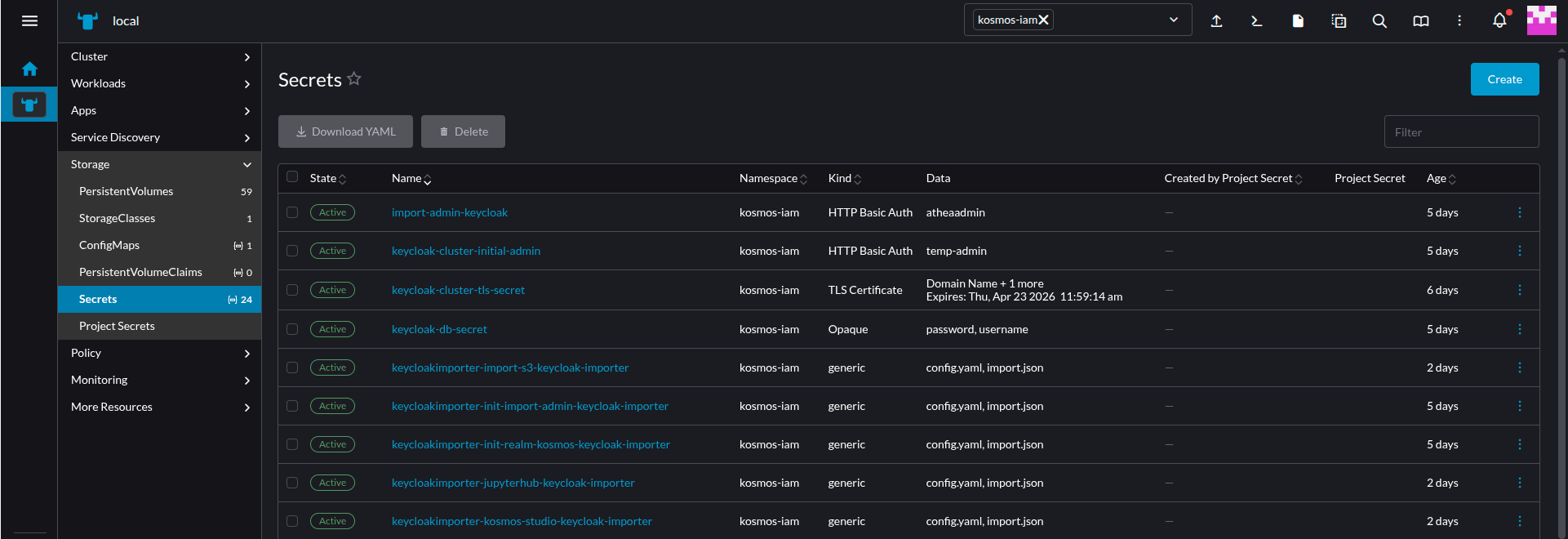 • Filter the kosmos-iam namespace